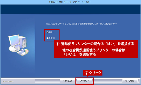 他の複合機が通常使うプリンターの場合は、「いいえ」を選択してください。
