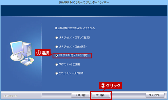 「IPP(SSL対応 / SSL非対応)」を選択し、[次へ]ボタンをクリックします。