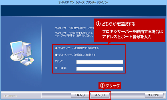 プロキシを設定し、[次へ]ボタンをクリックします。