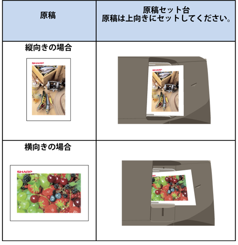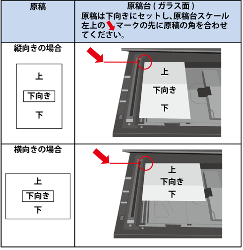 原稿をセットするときは次の向きでセットします。