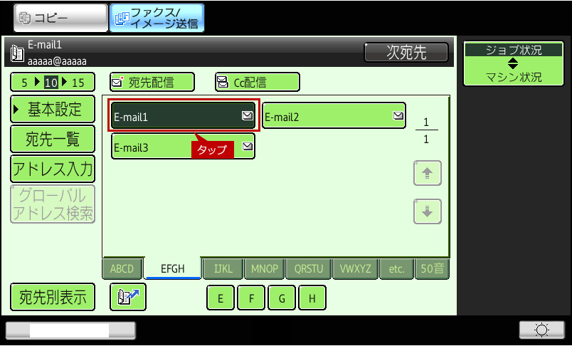 ※E-mailアドレスを直接入力して、宛先を指定する場合は、下記の参考情報を参照してください。