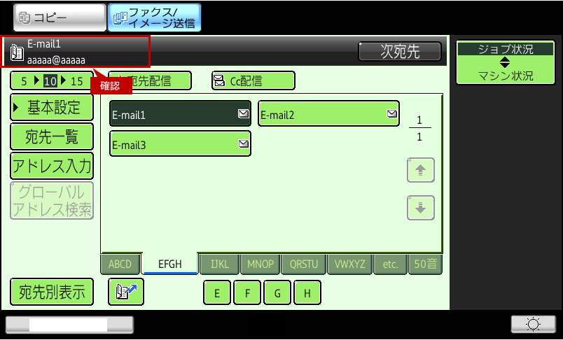 6.送信する宛先が表示されますので、送信先が間違っていないか確認してください。