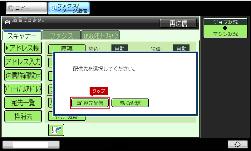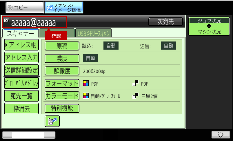 8.送信する宛先が表示されますので、送信先が間違っていないか確認してください。