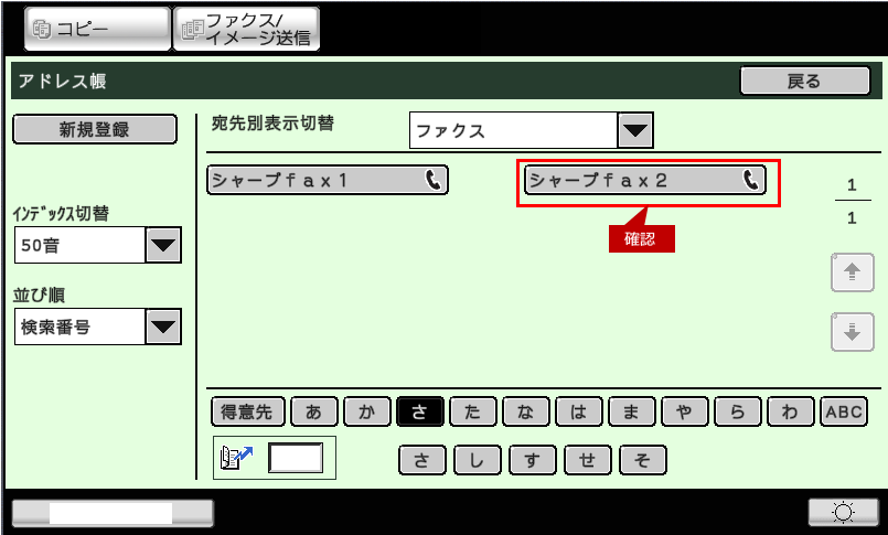 5.「アドレス帳」画面に戻りますので、登録した宛先が表示されていることを確認します。