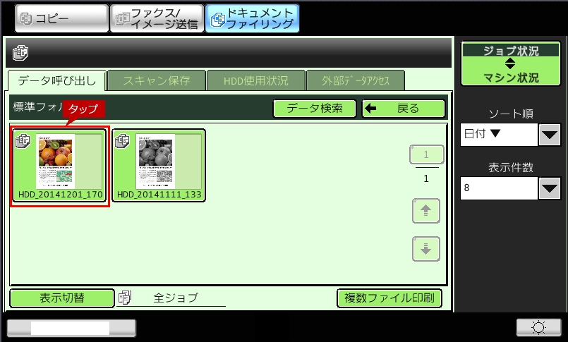 2.「データ呼び出し」画面が表示されますので、[標準フォルダー]をタップします。