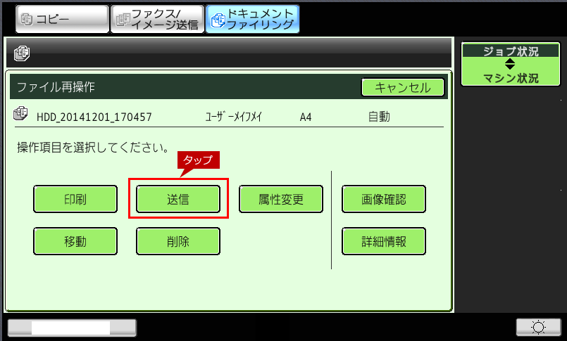 4.「ファイル再操作」画面が表示されますので、[送信]をタップします。
