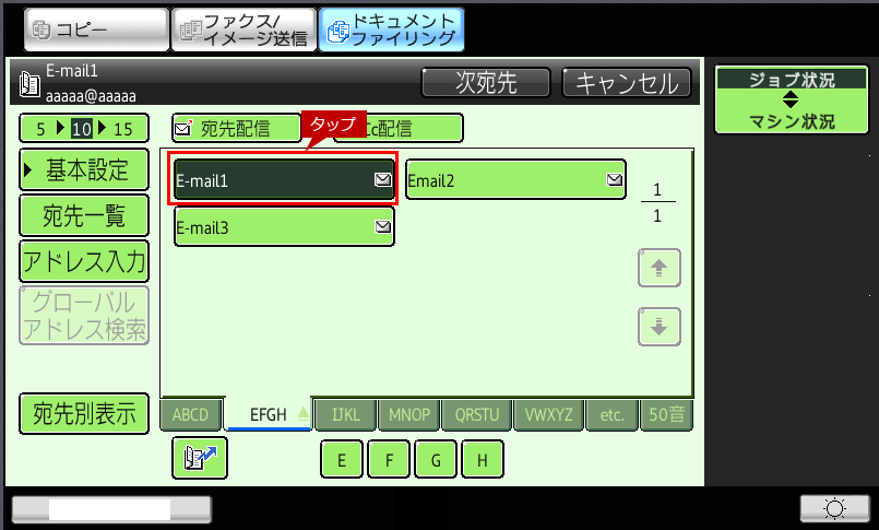 ※ここでは、E-mailアドレスを選択して送信する場合の例で説明します。