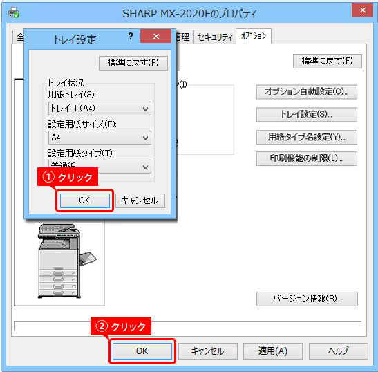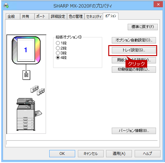 [トレイ設定]ボタンをクリックしてください。