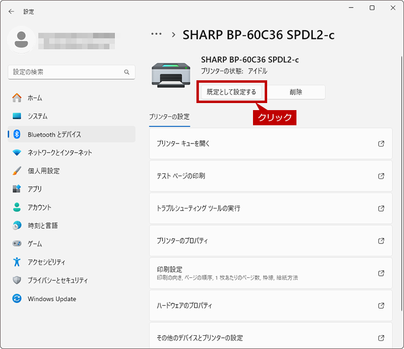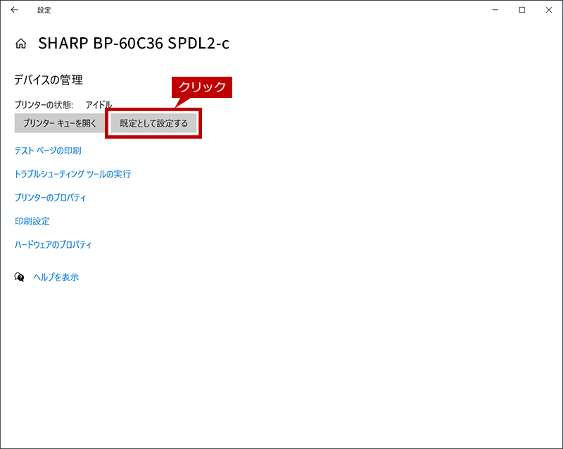※オフにした状態でに複合機の名前の下に「既定」と表示されている場合は、ウィンドウを閉じて設定を終わらせてください。