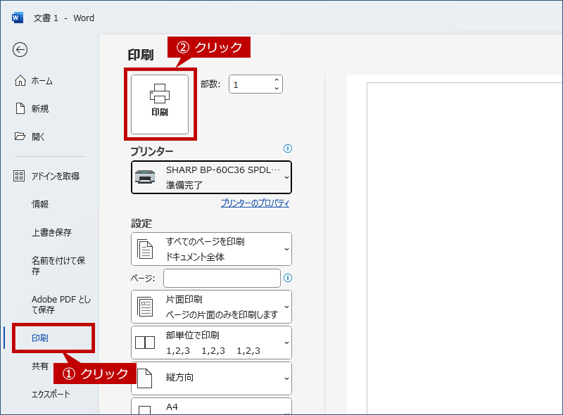 任意のアプリケーションを開き、ファイルメニューから「印刷」をクリックします。