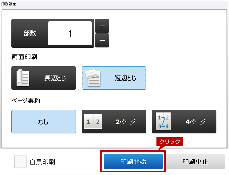 印刷画面が表示されますので、[印刷]をクリックして印刷を実行します。