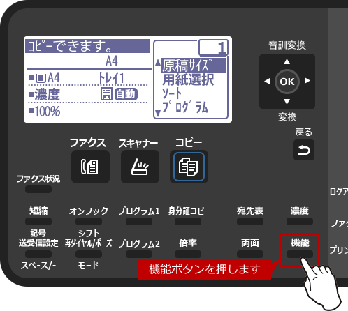 1. 基本画面で、[機能]を押します。