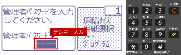 3. 「管理者パスワードを入力してください。」と表示されますので、テンキーを使って管理者パスワードを入力します。
