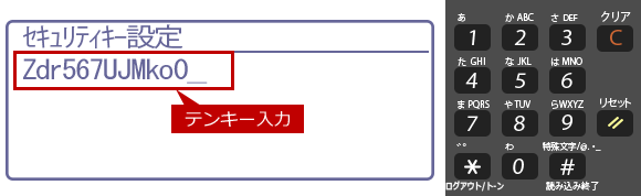 15. 「セキュリティキー設定」画面が表示されますので、テンキーを使ってセキュリティキーを入力します。