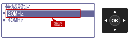25. 「帯域設定」画面が表示されますので、[▲][▼]を押して帯域設定値を選択し、[OK]を押します。
