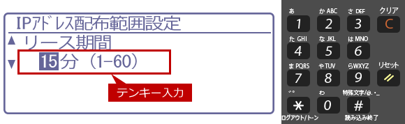 モバイル端末に割り当てたIPアドレスは、接続状況を確認するため一定間隔で配布し直します。再配布の間隔は、リース期間で設定します。