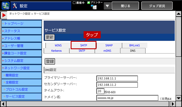 (SMTP設定画面)
