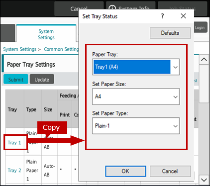 Looking up all settings information and copy the settings to the tray settings of [Printer Properties].