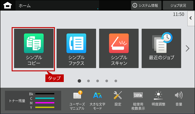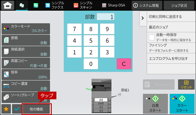 4. コピー基本画面が表示されますので、[他の機能]をタップします。