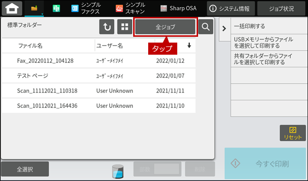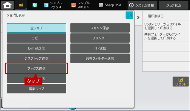 4. 表示データを絞り込むため[全ジョブ]をタップします。