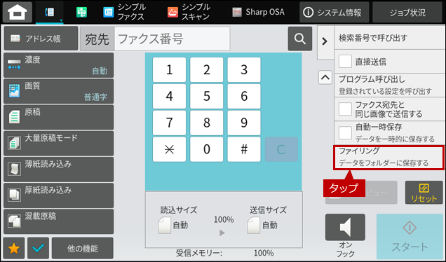 送信したファクス原稿を確認する場合は、[ドキュメントファイリング]を選択してご覧ください。