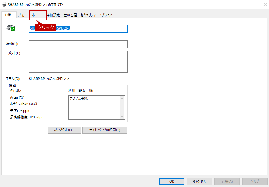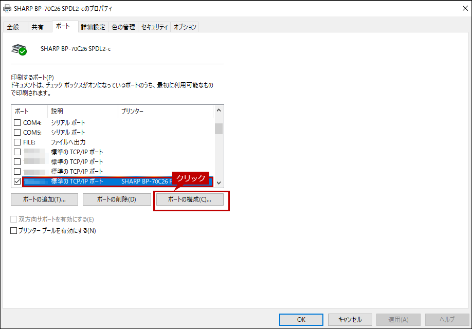 パソコンのプリンタードライバーの設定確認(パソコンの印刷ポートの設定)