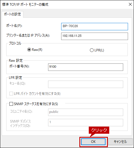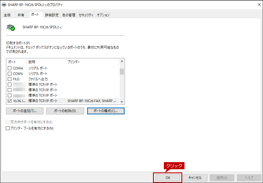 7. [OK]をクリックして、「当該プリンターのプロパティ」画面を閉じます。