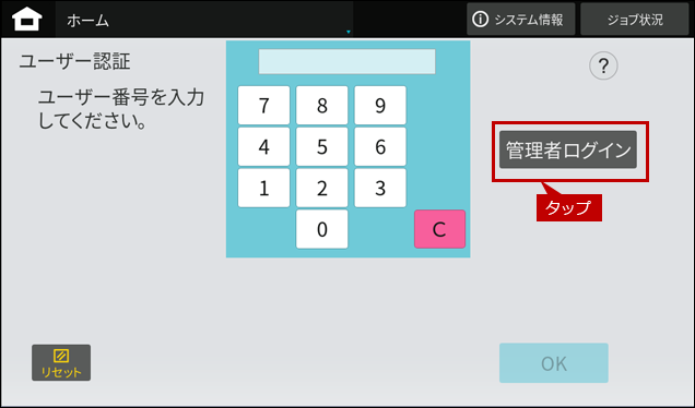 1. ユーザー認証画面で[管理者ログイン]をタップします。