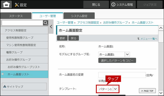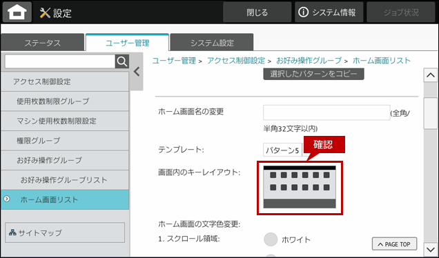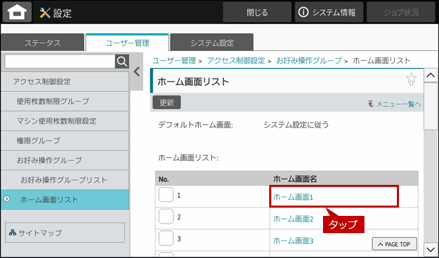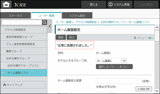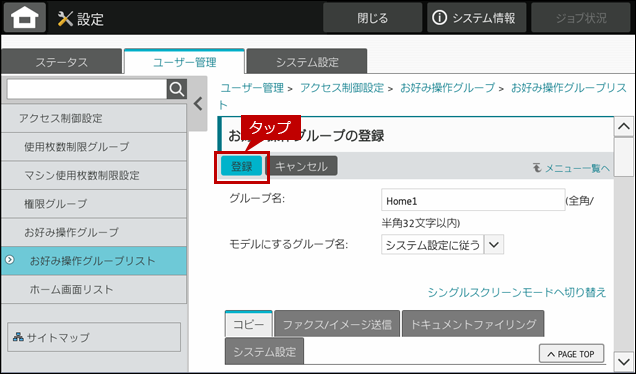 これで、ホーム画面設定の登録が完了しました。次に、お好み操作グループを作成します。
