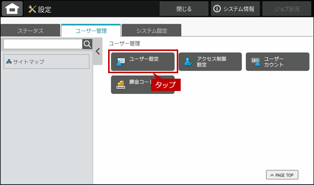 4. 設定画面が表示されますので、[ユーザー管理]タブをタップします。
