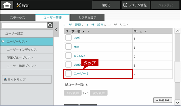 3. ユーザーリストから[ユーザー1]をタップします。