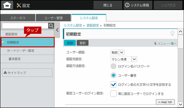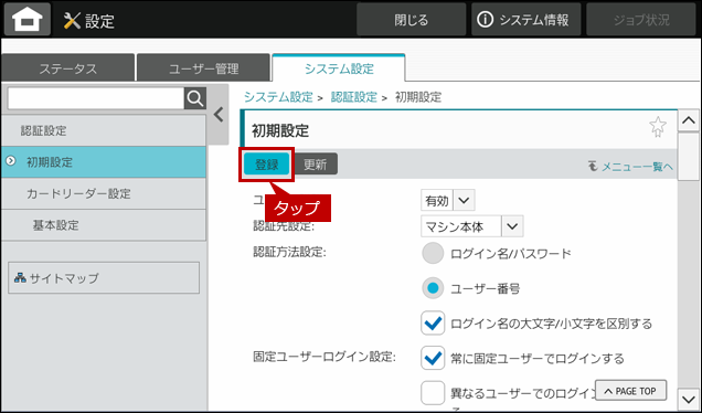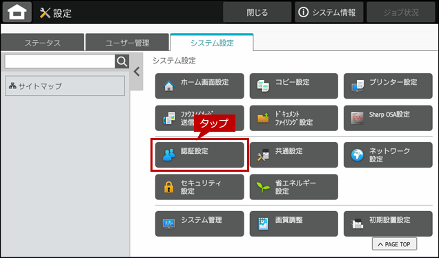 4. [認証設定]をタップします。