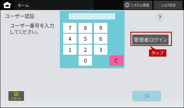 1. 認証画面で[管理者ログイン]をタップします。