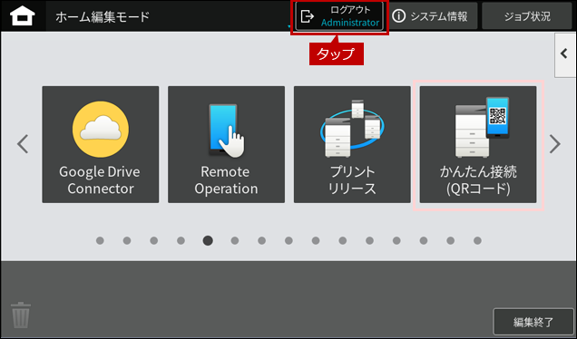 15. アイコンが表示されていることを確認し、[ログアウト]をタップします。