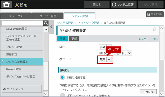 スマホ / QRコード / NFC / プリント / 印刷 / スキャン / 設定 / 登録