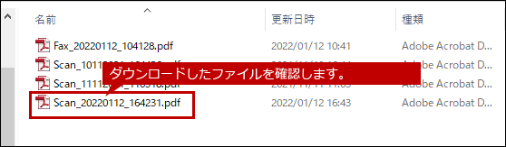 6. ダウンロード先のフォルダーが開きますので、ファイルを確認します。
