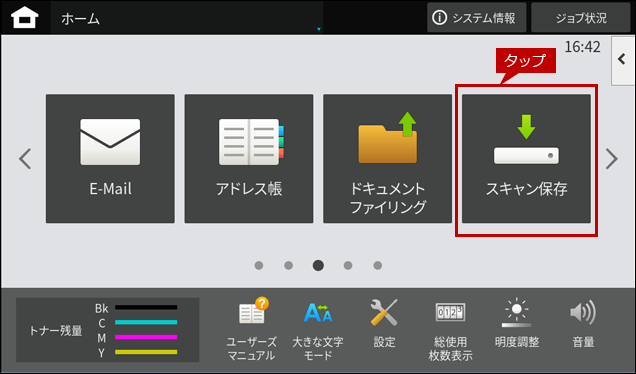 ※ [スキャン保存]がトップページにない場合は、ホーム画面を右にスクロールしてください。