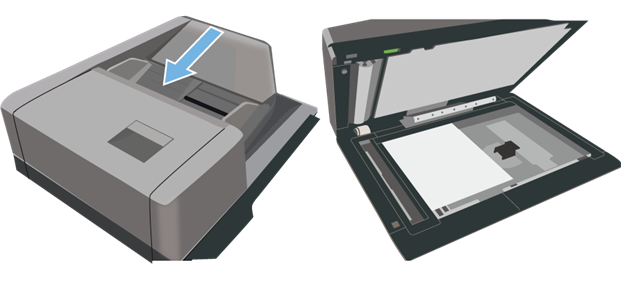 2. 原稿を原稿自動送り装置の原稿セット台、または原稿台(ガラス面)にセットしてください。