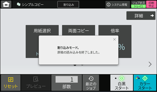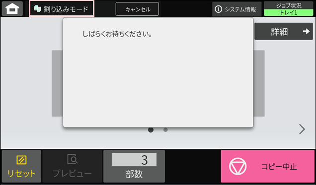 ※割り込みコピーのプリントが完了すると、中断していたプリントが再開されます。