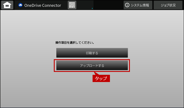 2. 「操作項目を選択してください。」の画面で、[アップロードする]をタップします。