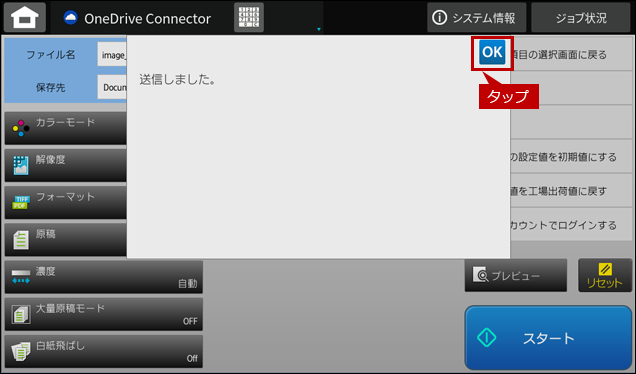 スキャナー / スキャン / アップロード / OneDrive / ワンドライブ / One / Drive / Microsoft / Connector / コネクター / クラウド / クラウドデータ / 送信 / 保存 / オンラインストレージ / ファイル / ファイル共有
