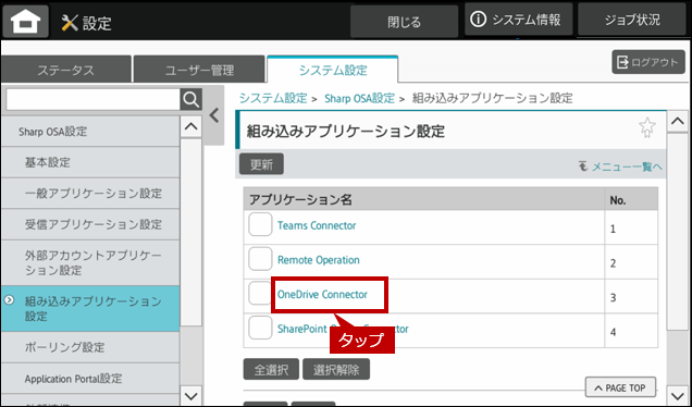 クラウド / クラウドデータ / システム / システム設定 / OneDrive / ワンドライブ / One / Drive / Microsoft / Connector / コネクター / オンラインストレージ / アップロード / ファイル / ファイル共有