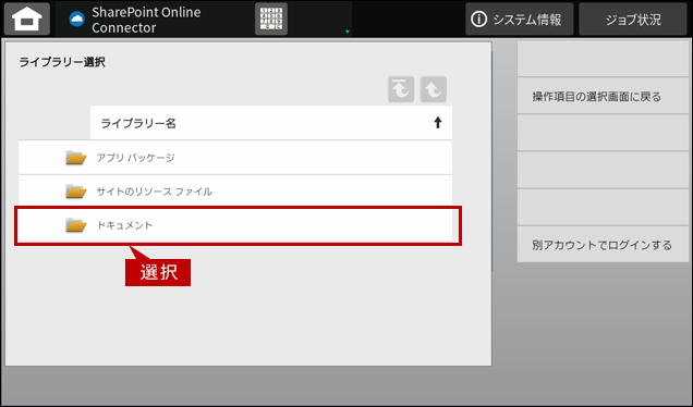 2. 「ライブラリー選択」画面が表示されましたら、印刷したいファイルが保存されているライブラリーを選択します。