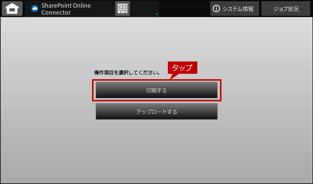 1. 「操作項目を選択してください。」の画面が表示されますので、[印刷する]をタップします。
