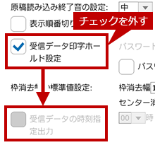 [受信データ印字ホールド設定]にチェックが入っていると、[受信データの時刻指定出力]は設定できません。