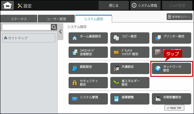 2. システム設定画面が表示されますので[ネットワーク設定]をタップします。
