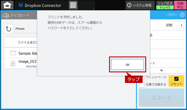 これで、Dropbox内に保存されているファイルを印刷することができました。