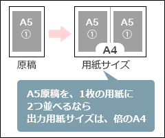 - 例1)A5サイズの原稿を2つ並べるには、A4の用紙サイズ
