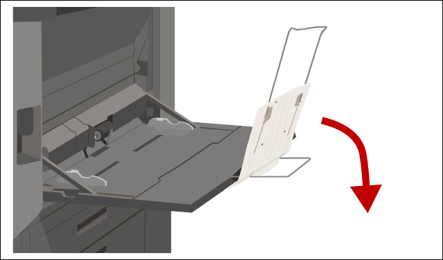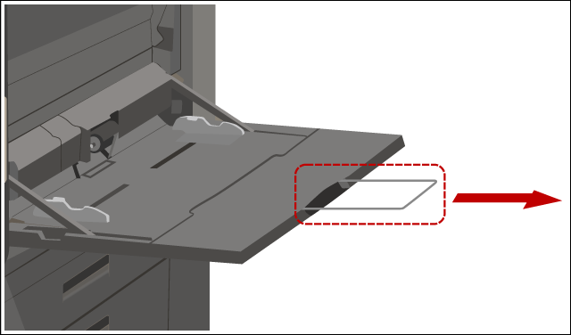 1. 手差しトレイの補助ガイドをいっぱいまで引き出します。