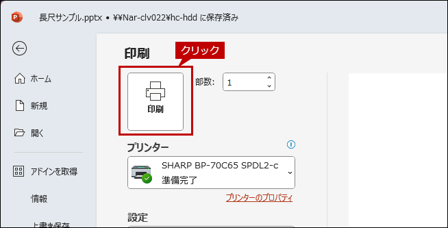 10.「印刷」画面に戻りますので、[印刷]をクリックします。